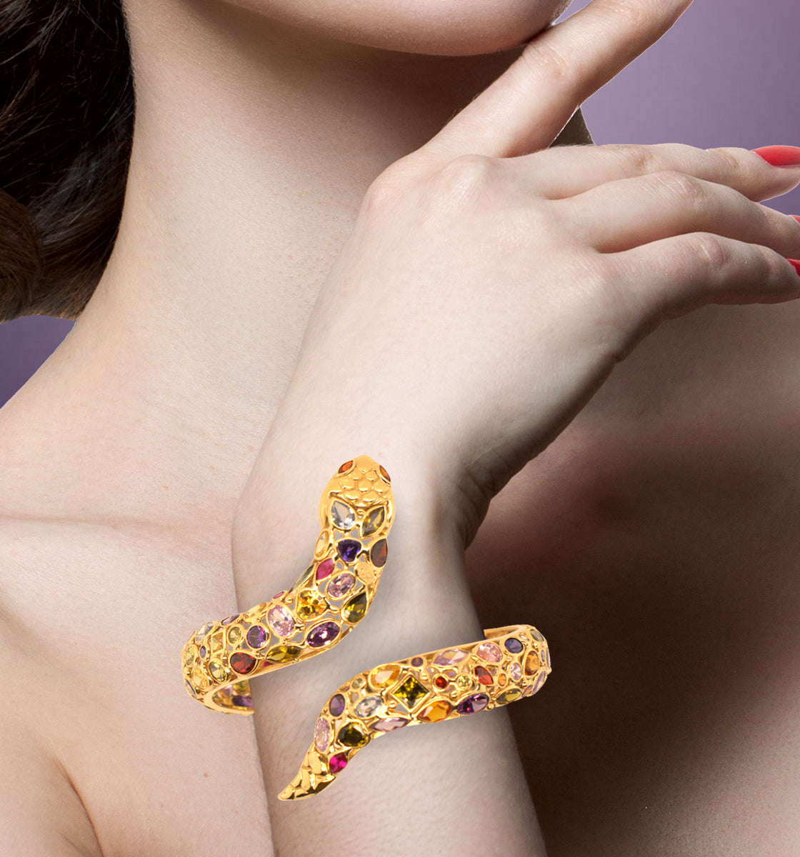2.73CTW Ruby Diamond Bangle In 18K Yellow Gold