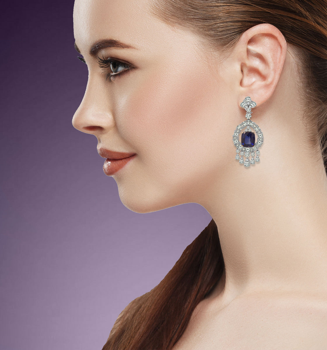 3.64CTW Sapphire Diamond Ring In 18K White Gold