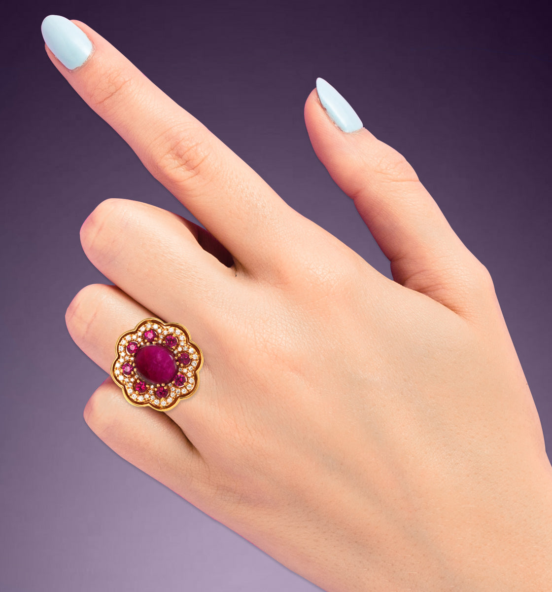 4.93CTW Ruby Diamond Ring In 18K Rose Gold